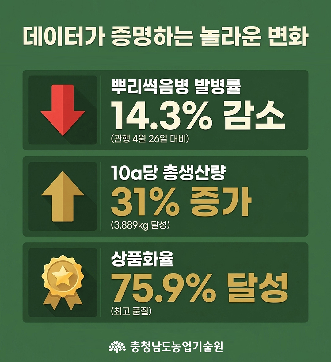 데이터가 증명하는 효과: * 뿌리썩음병 발병률 14.3% 감소