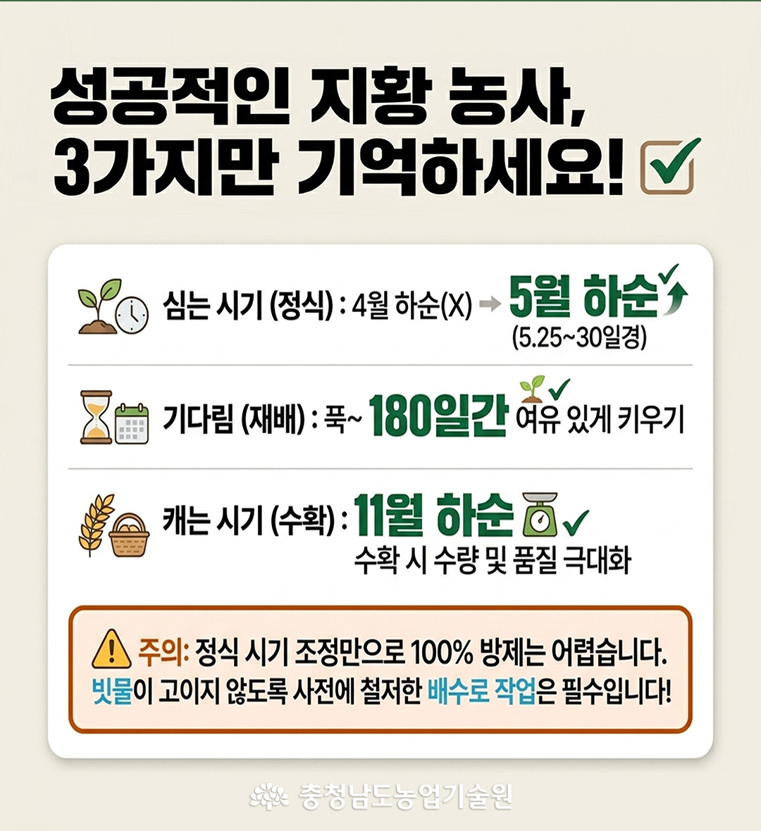 본격적인 농사철을 맞아 지황 재배 농가의 가장 큰 고민거리인 장마철 뿌리썩음병을 획기적으로 줄일 수 있는 재배 꿀팁을 전해드립니다!